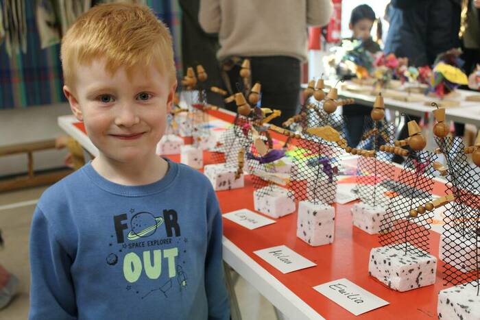 Finissage in der Turnhalle: Kita-Kiebitzweg-Kinder zeigen, was sie im Kunstprojekt geschaffen haben