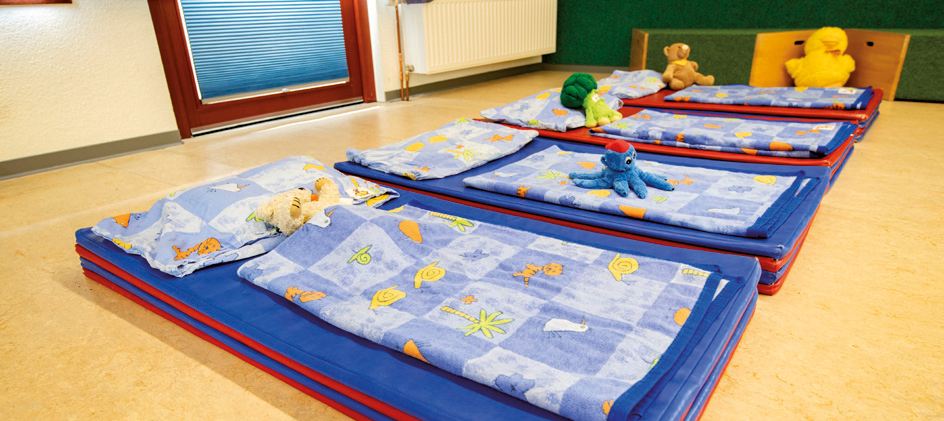 Je nach Alter entscheiden die Kinder selbst, ob sie ausruhen/schlafen oder in der Gruppe in ruhiger Atmosphäre spielen möchten.