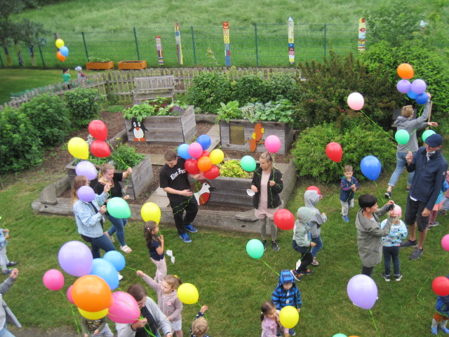 On Wednesday last week the little ones and the older children at the Kita Kiebitzweg let their corona birds fly away attached to balloons.